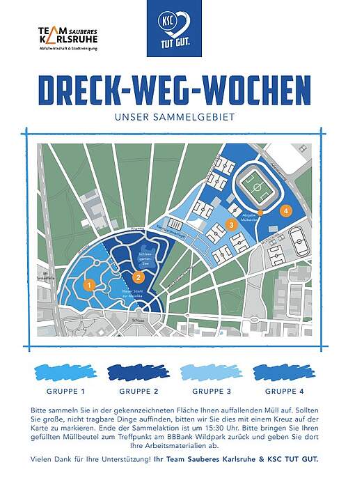 Im Rahmen der sozialen Dachmarke KSC TUT GUT. übernimmt der Karlsruher SC Verantwortung nicht nur auf dem Platz, sondern auch in unserer Stadt. Anlässlich des 20-jährigen Jubiläums der „Dreck-weg-Wochen“ veranstaltet das Team Sauberes Karlsruhe den Auftakt der stadtweiten Aufräumaktion im BBBank Wildpark. Im Vergangenen Jahr nahmen bereits über 15.000 freiwillige Helferinnen und Helfer an der Aktion teil.